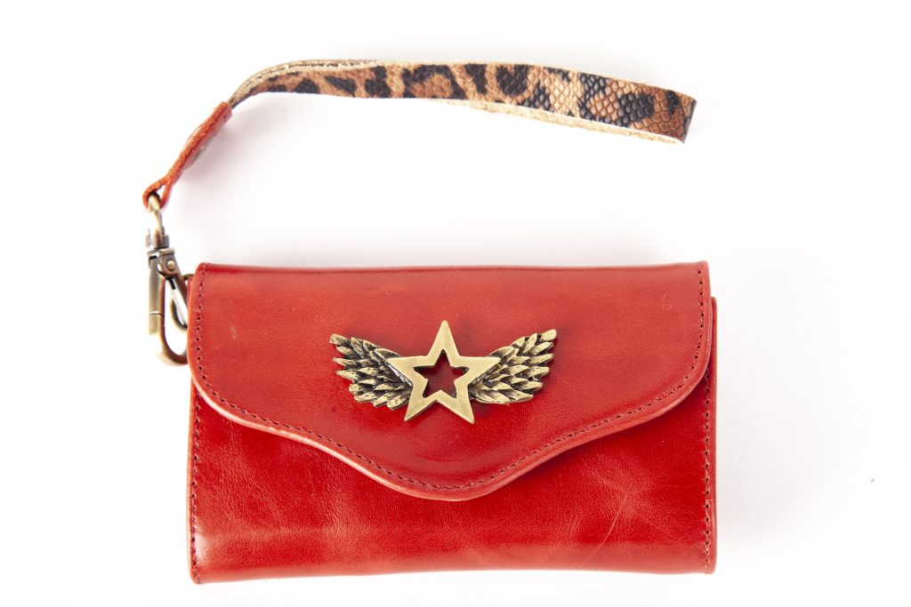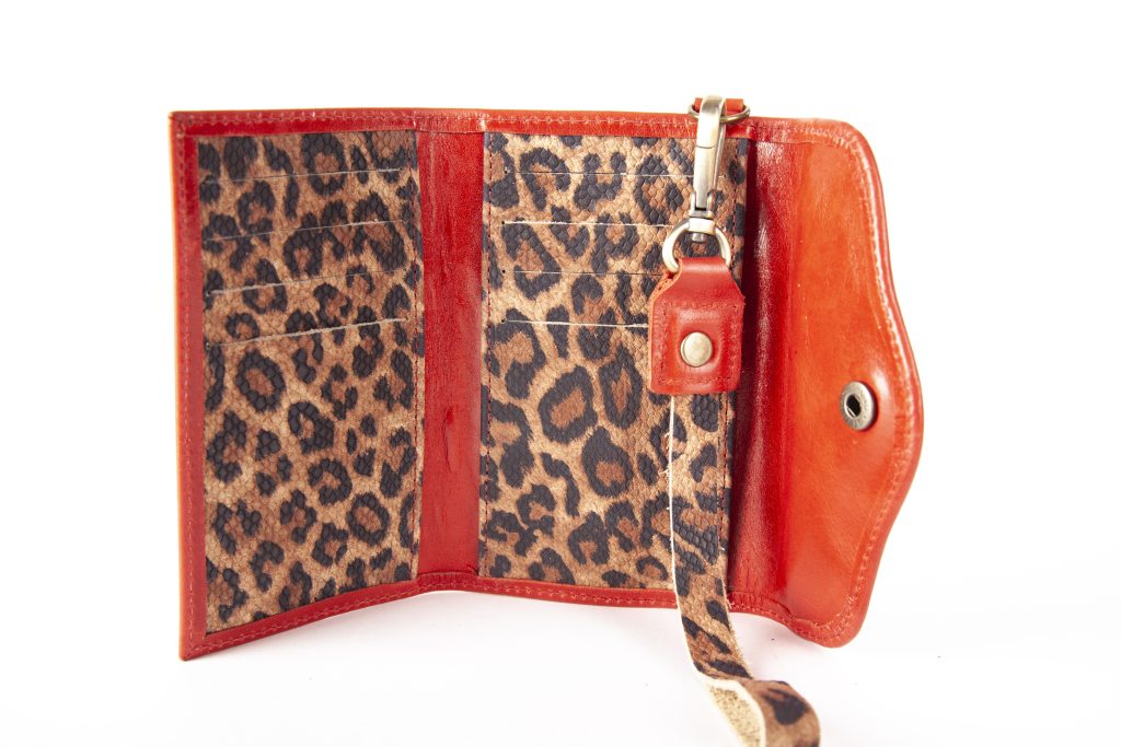 La Billetera Mini Roja con Print es el accesorio perfecto para mujeres que aman los detalles llamativos, modernos y llenos de personalidad. Fabricada en 100% cuero, combina un vibrante tono rojo con un hermoso print que la hace única y especial.
