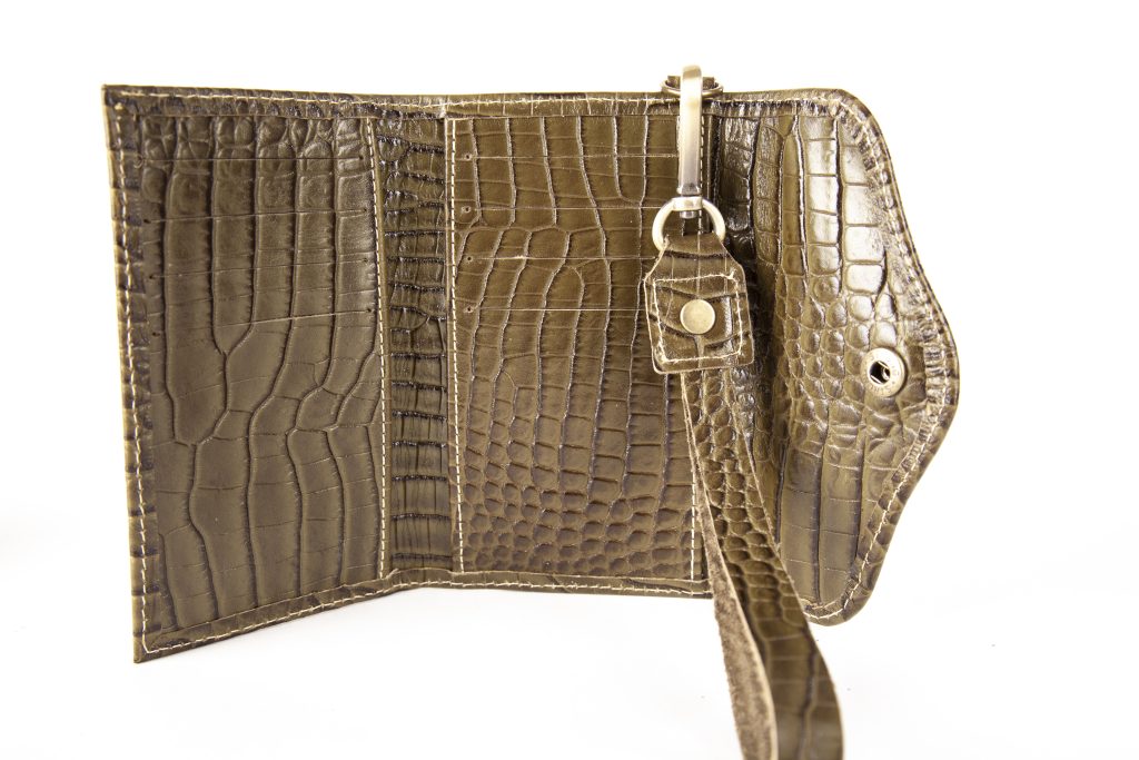 La Billetera Mini Verde Textura es perfecta para quienes aman los accesorios compactos, femeninos y con personalidad. Fabricada en 100% cuero, su textura le da un toque moderno y elegante que resalta en cualquier look.
